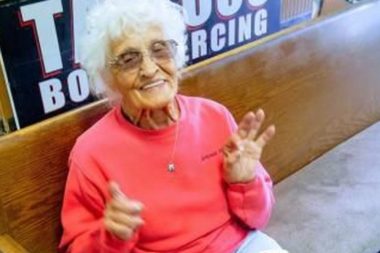 Ve věku 103 let babička poprvé zamířila do tetovacího salonu a její tělo nyní zdobí obrázek žáby. Babička z USA…