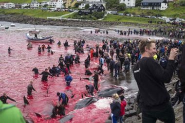Na Faerských ostrovech bylo podle tradice znovu zabito 252 velryb druhu kulohlavec černý a 35 atlantických bílých delfínů. [caption…