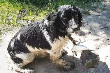 „Viděla jsem velmi mokré štěně se železnou konstrukcí na krku, který seděl na břehu …“