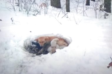 Na severozápadě amerického státu Minnesota se zvedla vánice. Špatné počasí nevyděsilo fenku, která právě porodila šest štěňat. Fenka se…
