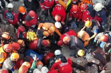 Turečtí záchranáři vysvobodili malé dítě z trosek po zemětřesení o síle 6,6 stupně v provincii Izmir, píše