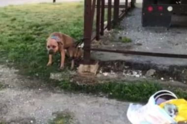 V New Orleans byl opuštěný pitbul přivázán k plotu. Nervózní zvíře se se strachem přikrčilo těsně k zemi, když…