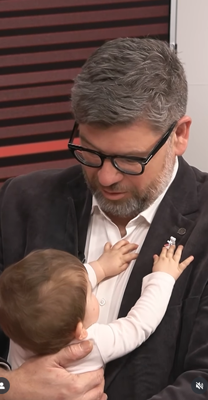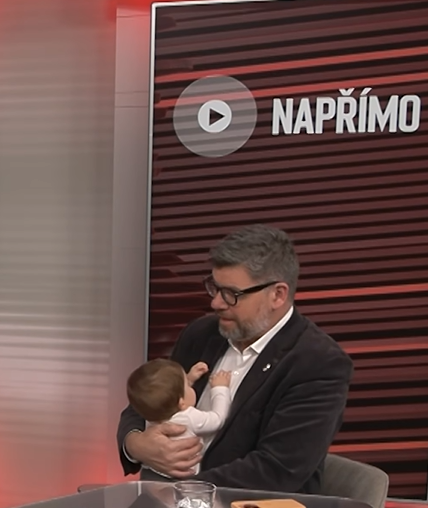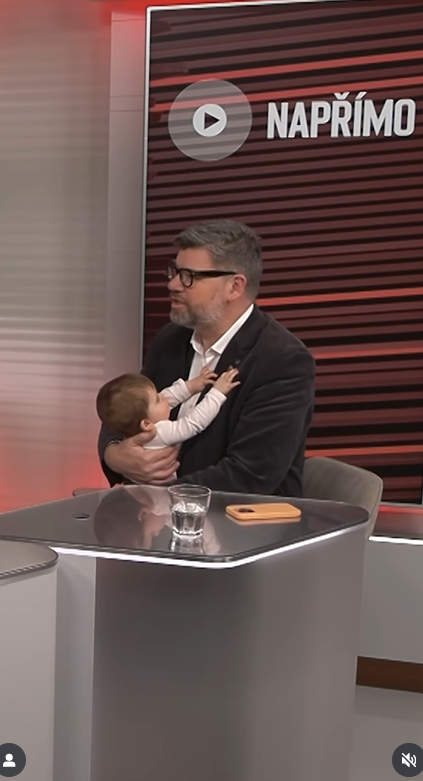 Malá hvězdička okamžitě upoutala pozornost – zatímco táta mluvil o politice, ona si spokojeně žvatlala a sledovala dění kolem sebe, jako by byla ve studiu odjakživa.