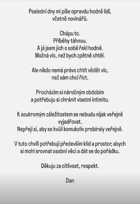 Uvedl, že zájem veřejnosti chápe, protože sám v minulosti sdílel ze svého života více, než bylo možná rozumné. Zároveň ale zdůraznil, že existují hranice, které si nyní potřebuje chránit.