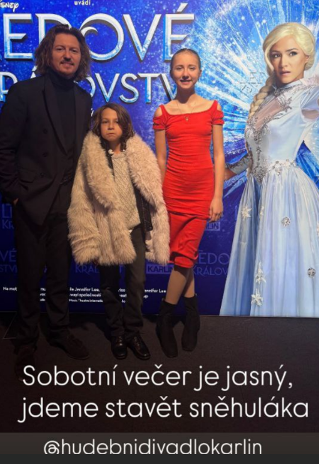 Na svém Instagramu sdílel fotografii ze společného večera v Hudební divadlo Karlín, kde si užili muzikálovou podívanou Frozen.