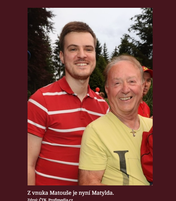 Jeho vnuk Matouš prošel tranzicí a dnes vystupuje jako Matylda. Píše o tom Super.cz.
