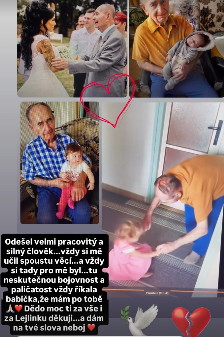 Naznačila, že dědeček už dál netrpí a že jeho odchod bere jako konec trápení, i když pro ni samotnou znamená obrovskou ztrátu.
